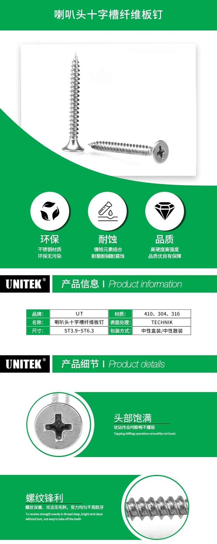 喇叭頭十字槽纖維板釘